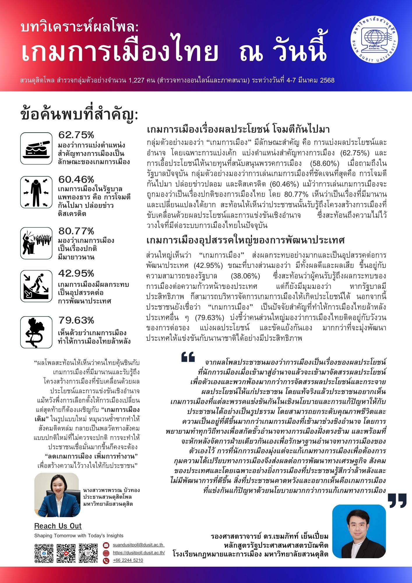 Publication: บทวิเคราะห์ผลโพล: เกมการเมืองไทย ณ วันนี้