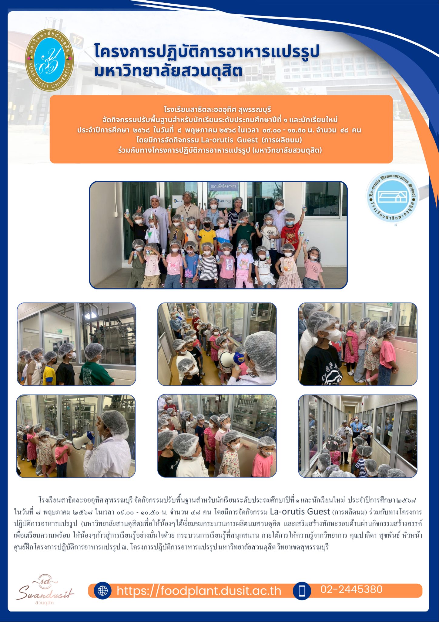 โดยมีการจัดกิจกรรม La-orutis Guest (การผลิตนม) ร่วมกับทางโครงการปฏิบัติการอาหารแปรรูป (มหาวิทยาลัยสวนดุสิต)