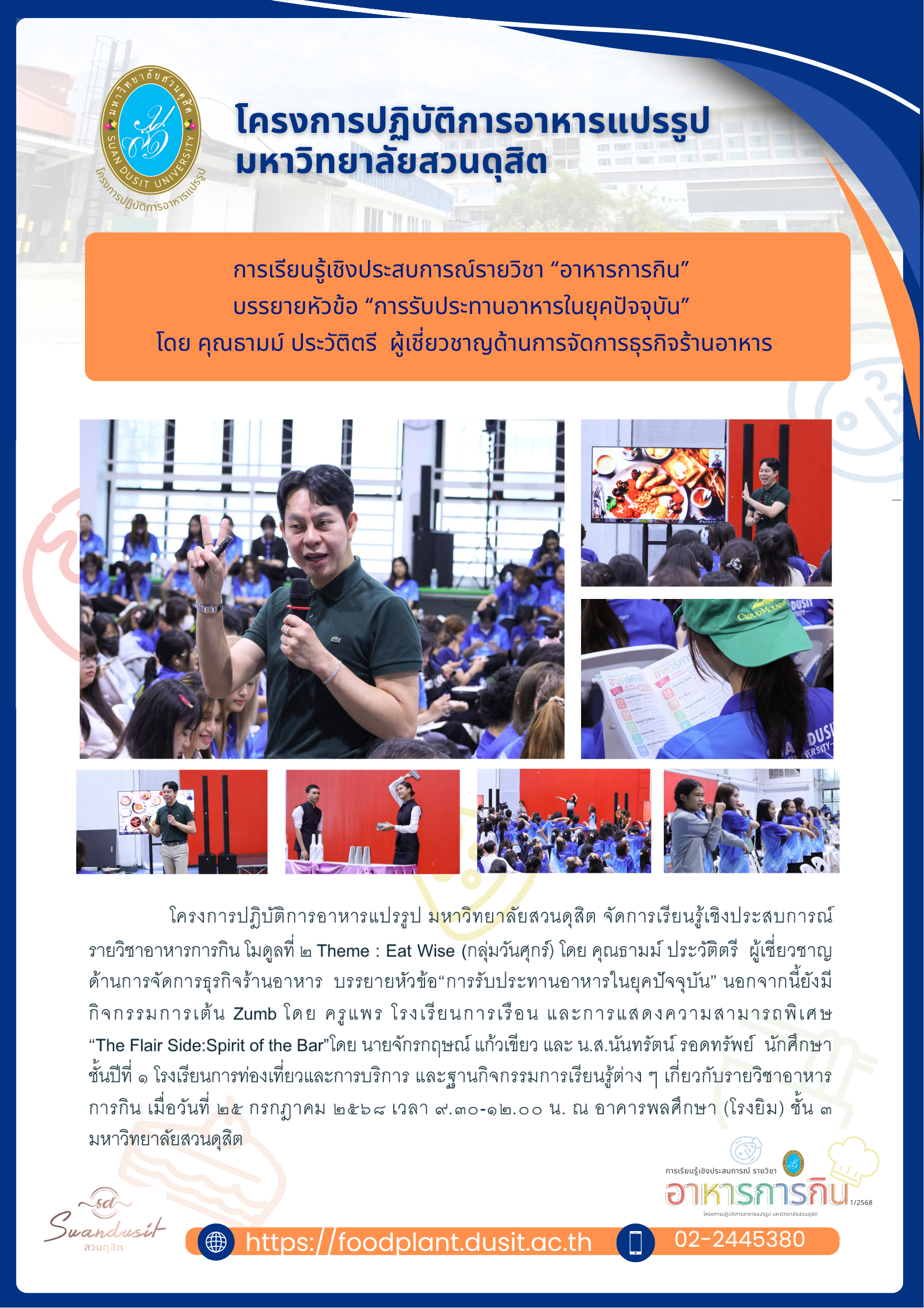 บรรยายหัวข้อ “การรับประทานอาหารในยุคปัจจุบัน” โดย คุณธามม์ ประวัติตรี กูรูนักธุรกิจ ผู้เชี่ยวชาญด้านการจัดการธุรกิจร้านอาหาร