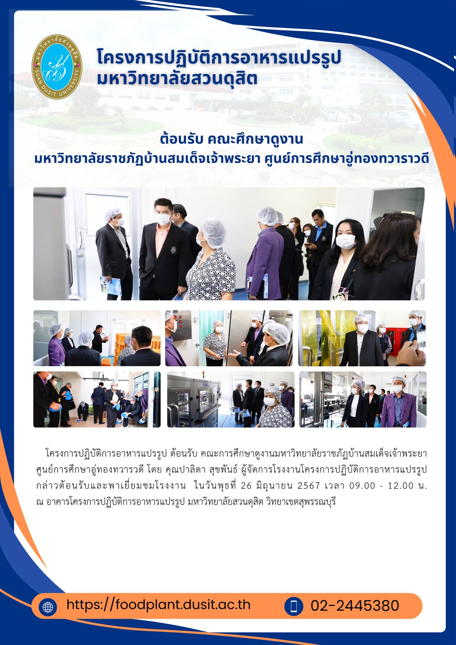 มหาวิทยาลัยราชภัฏบ้านสมเด็จเจ้าพระยา ศูนย์การศึกษาอู่ทองทวารวดี เข้าศึกษาดููงานโครงการปฏิบัติการอาหารแปรรูป มหาวิทยาลัยสวนดุสิต