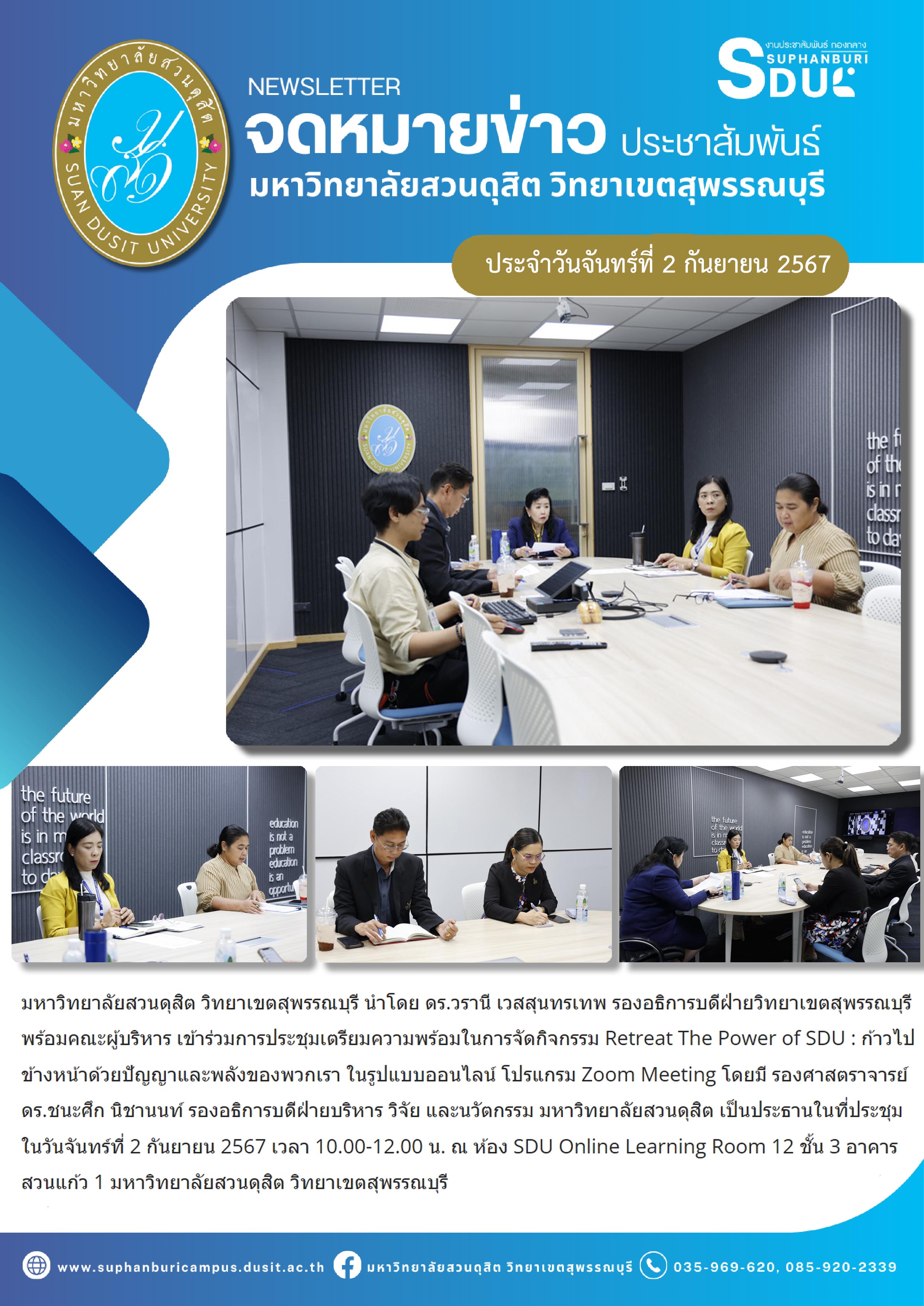 จดหมายข่าวประชาสัมพันธ์ มหาวิทยาลัยสวนดุสิต วิทยาเขตสุพรรณบุรี ประจำวันจันทร์ที่ 2 กันยายน 2567