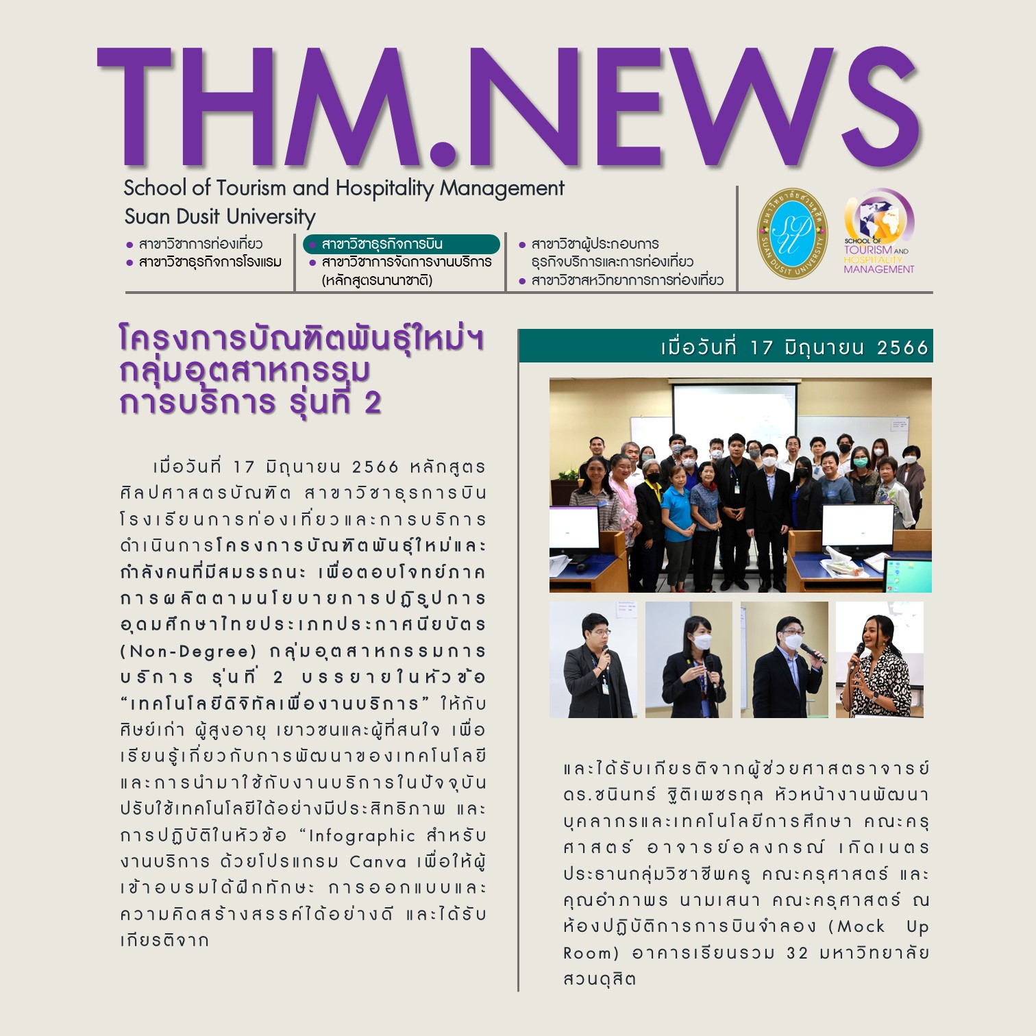 เมื่อวันที่ 17 มิถุนายน 2566 หลักสูตรศิลปศาสตรบัณฑิต สาขาธุรกิจการบิน โรงเรียนการท่องเที่ยวและกาบริการ ดำเนินการโครงการบัณฑิตพันธุ์ใหม่และกำลังคนที่มีสมถรรนะ เพื่อตอบโจทย์ภาคการผลิตตามนโยบายการปฏิรูปจากอุดมศึกษาไทยประเภทประกาศนียบัตร (Non-Degree) กลุ่มอุตสาหกรรมการบริการ รุ่นที่ 2 บรรยายในหัวข้อ "เทคโนโลยีดิจิทัลเพื่องานบริการ" ให้กับศิษย์เก่า ผู้สูงอายุ เยาวชนและผู้ที่สนใจ เพื่อเรียนรู้เกี่ยวกับการพัฒนาของเทคโโลยีได้อย่าประสทิธิภาพ และการปฏิบัติในหัวข้อ "Infographic สำหรังานบริการ ด้วยโปรกรม Canva เพื่อให้ผู้เข้าอบรมได้ฝึกทักษะ การออกแบบและความคิดสร้างสรรค์ได้อย่างดีและได้รับเกียรติจากผู้ช่วยศาสตราจารย์ ดร.ชนินทร์ ฐิติเพชรกุล หัวหน้างานฝ่ายพัฒนาบุคลากรและเทคโนโลยีการศึกษา คณะครุศาสตร์ อาจารย์อลงกรณ์ เกิดเนตร ประธานกลุ่มวิชาชีพครู คณะครุศาสตร์ และคุณอำภาพร นามเสนา คณะครุศาสตร์ ณ ห้องปฏิบัติการการบินจำลง (Mock-up room) อาคารเรียนรวม 32 มหาวิทยาลัยยสวนดุสิต