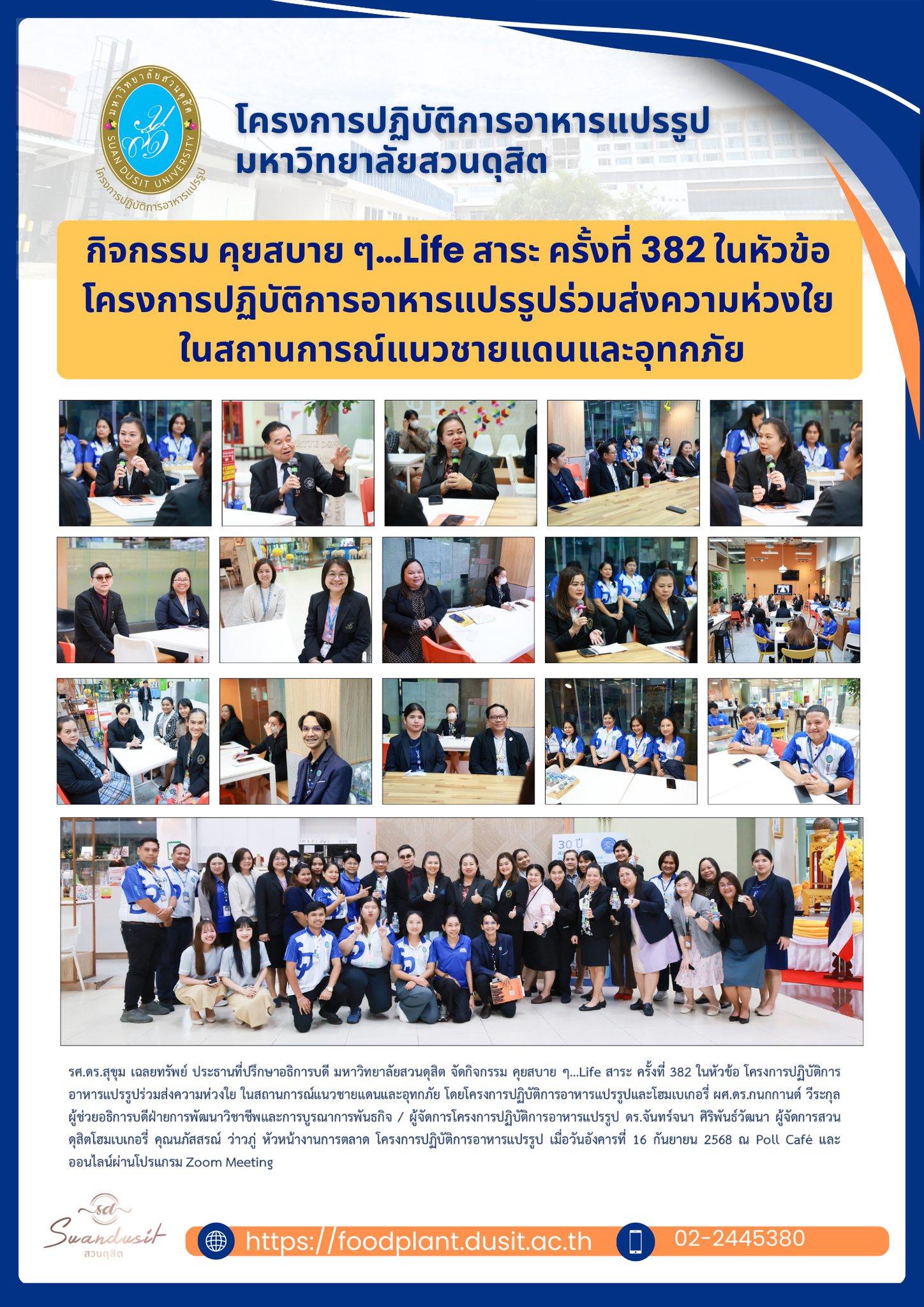 กิจกรรม คุยสบาย ๆ…Life สาระ ครั้งที่ 382 ในหัวข้อ โครงการปฏิบัติการอาหารแปรรูป ร่วมส่งความห่วงใยในสถานการณ์แนวชายแดนและอุทกภัย