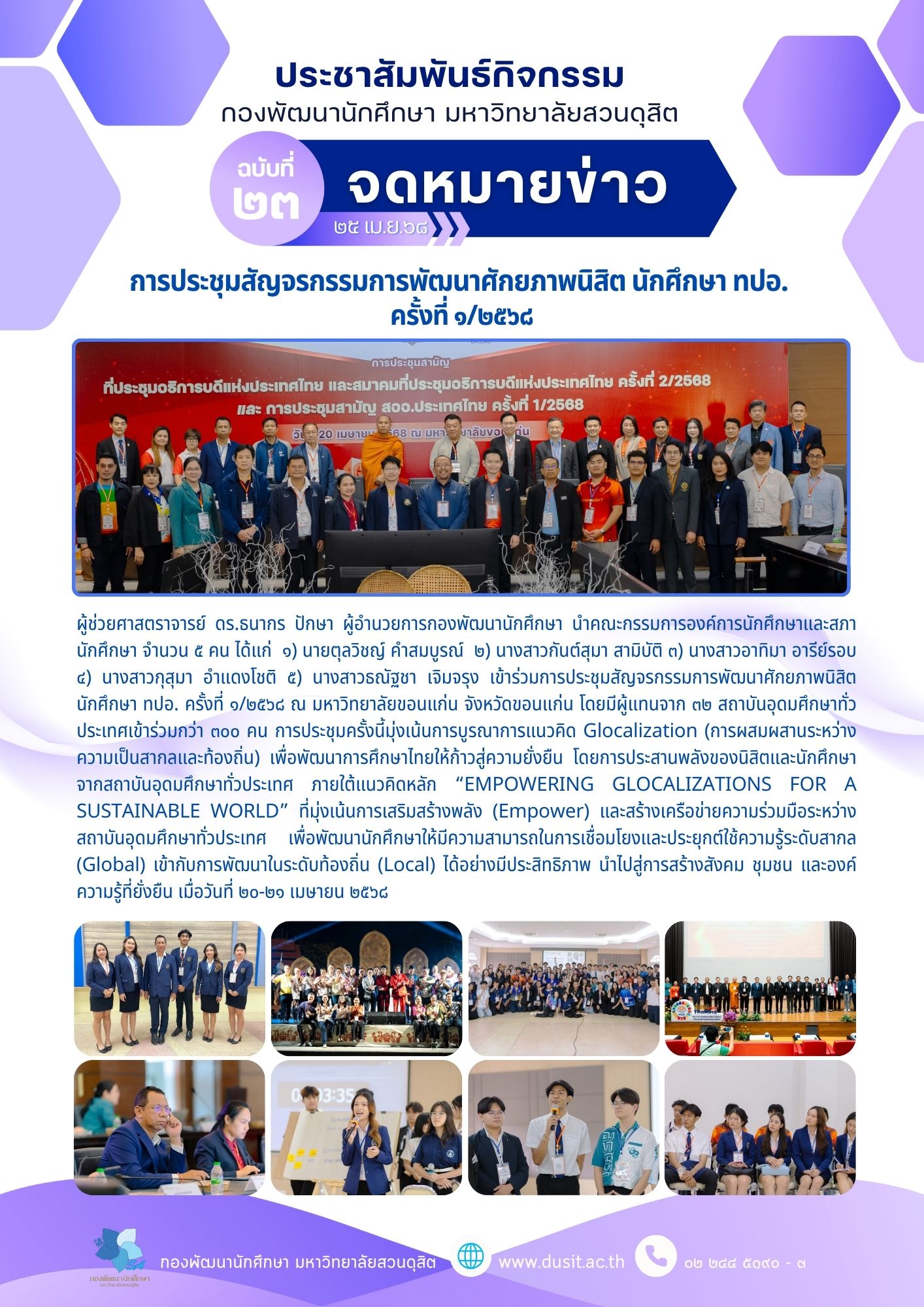 | dc.title.alternative | การประชุมสัญจรกรรมการพัฒนาศักยภาพนิสิต นักศึกษา ทปอ. ครั้งที่ 1/2568 | |