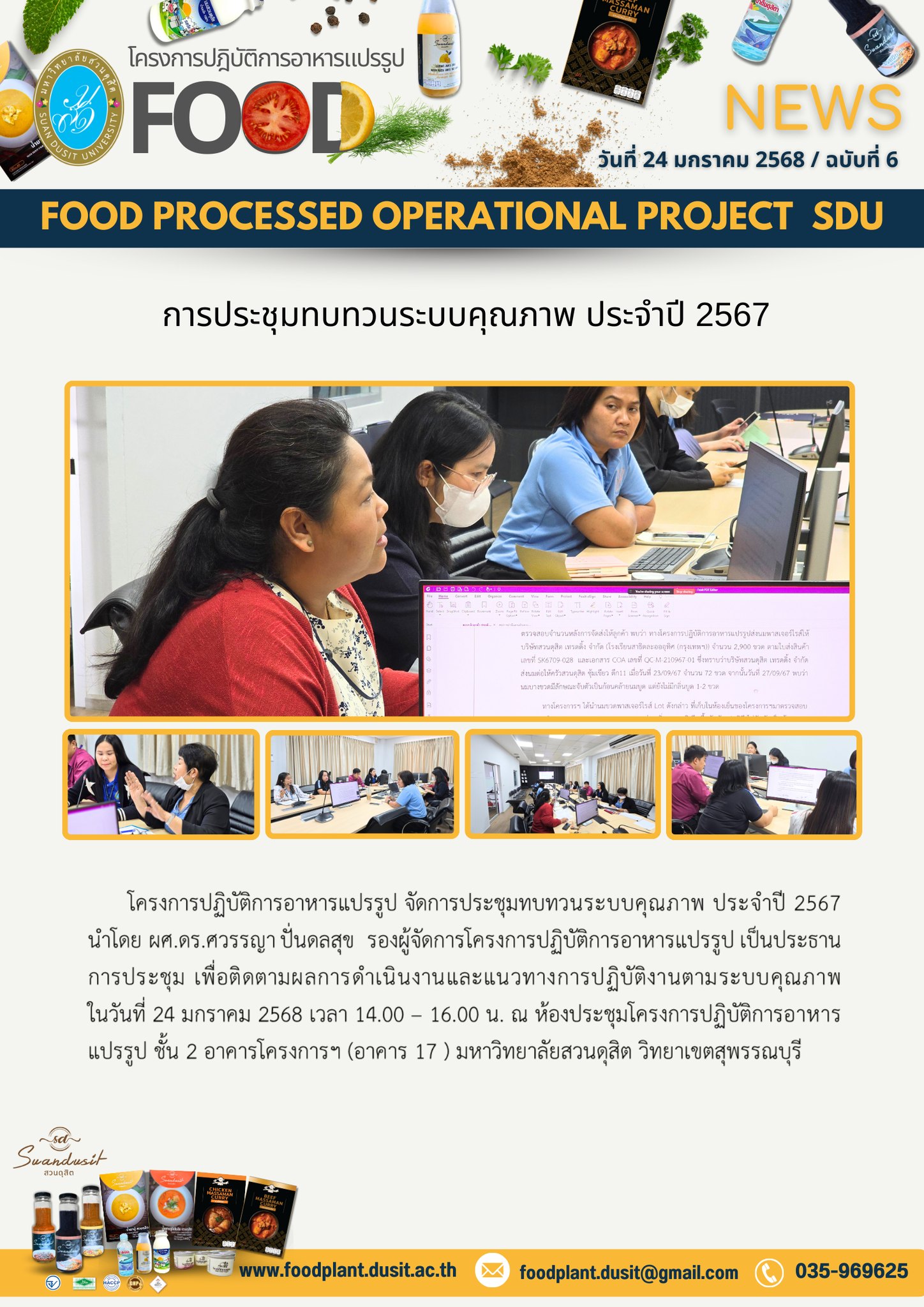 โครงการปฏิบัติการอาหารแปรรูป จัดการประชุมทบทวนระบบคุณภาพ ประจำปี 2567 นำโดย ผศ.ดร.ศวรรญา ปั่นดลสุข รองผู้จัดการโครงการปฏิบัติการอาหารแปรรูป เป็นประธานการประชุม เพื่อติดตามผลการดำเนินงานและแนวทางการปฏิบัติงานตามระบบคุณภาพ