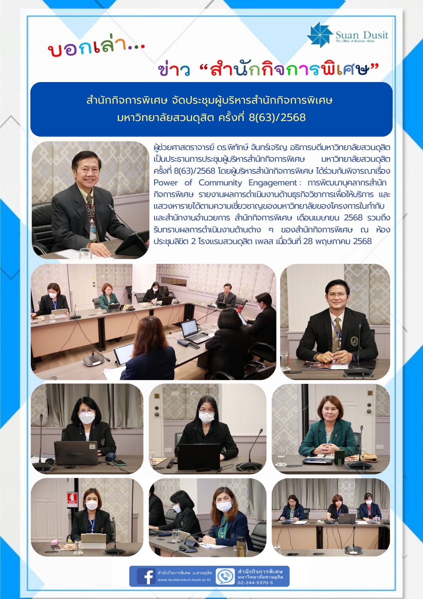สำนักกิจการพิเศษ จัดประชุมผู้บริหารสำนักกิจการพิเศษ มหาวิทยาลัยสวนดุสิต ครั้งที่ 8(63)/2568