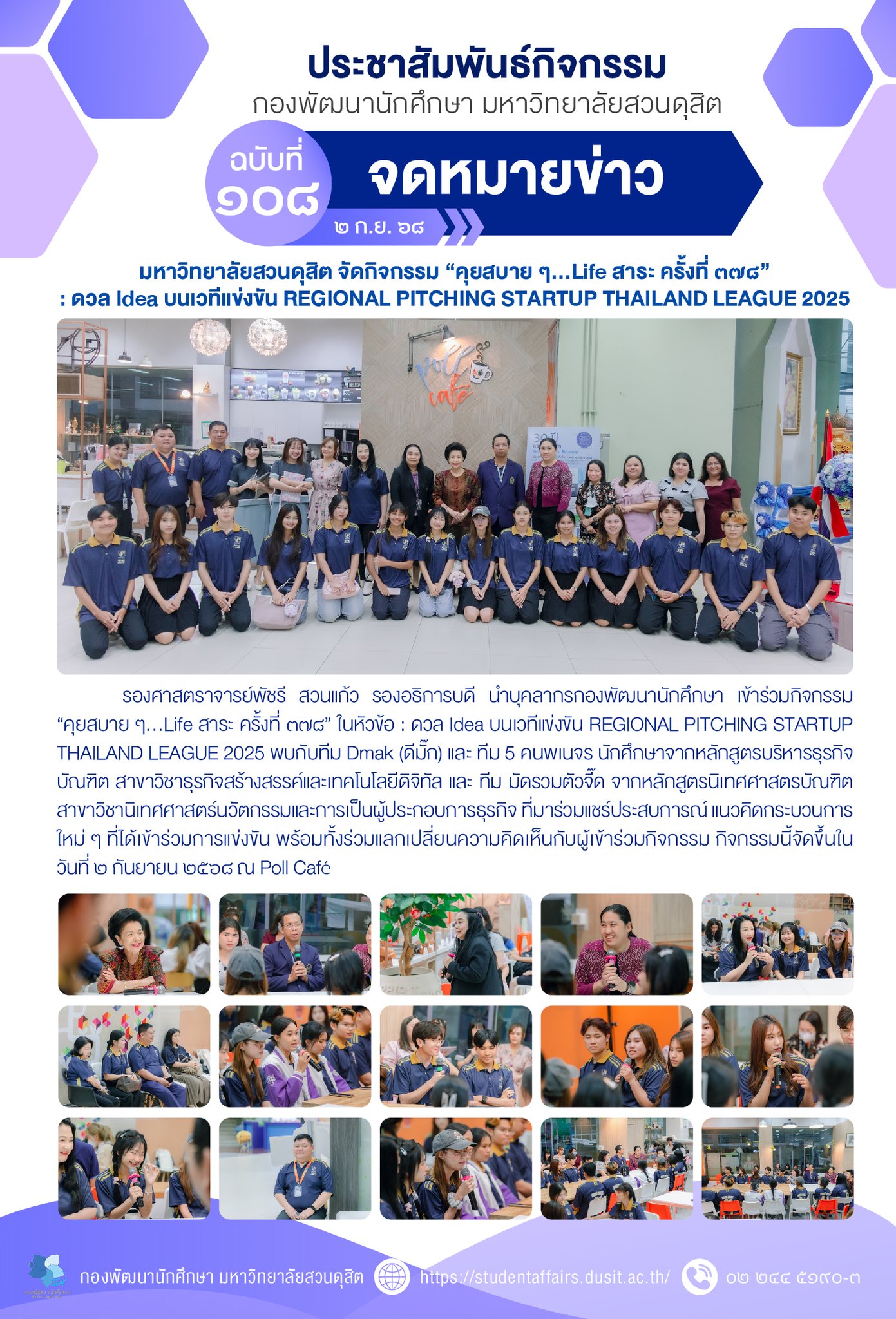 มหาวิทยาลัยสวนดุสิต จัดกิจกรรม “คุยสบาย ๆ...Life สาระ ครั้งที่ ๓๗๘” : ดวล Idea บนเวทีแข่งขัน REGIONAL PITCHING STARTUP THAILAND LEAGUE 2025