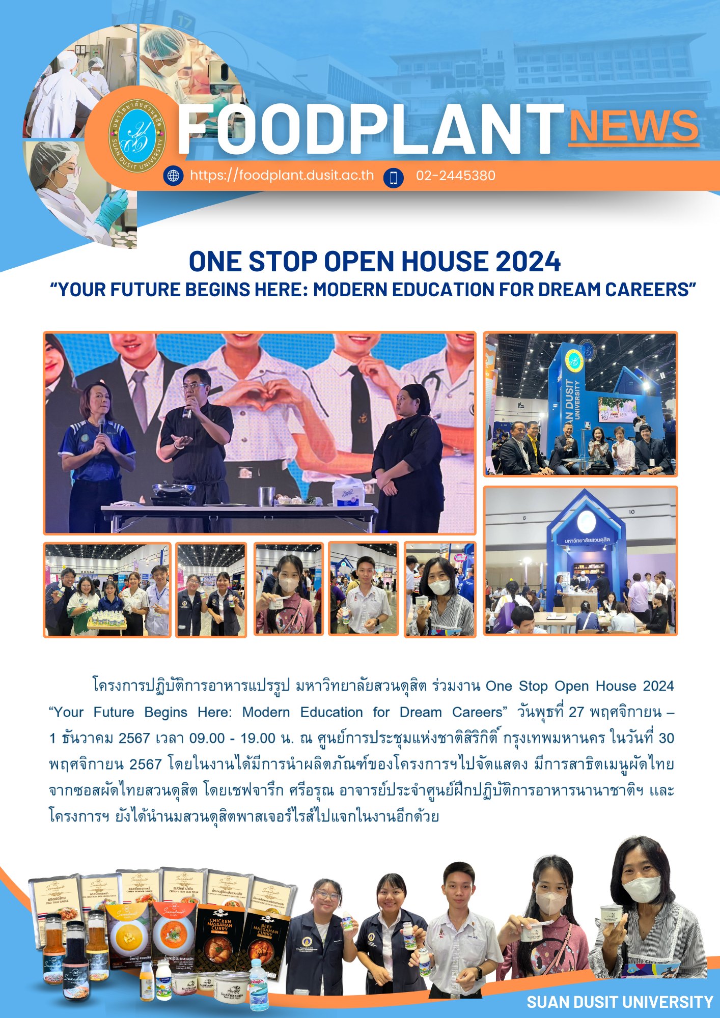 โครงการปฏิบัติการอาหารแปรรูป มหาวิทยาลัยสวนดุสิต ร่วมงาน One Stop Open House 2024 “Your Future Begins Here: Modern Education for Dream Careers”
