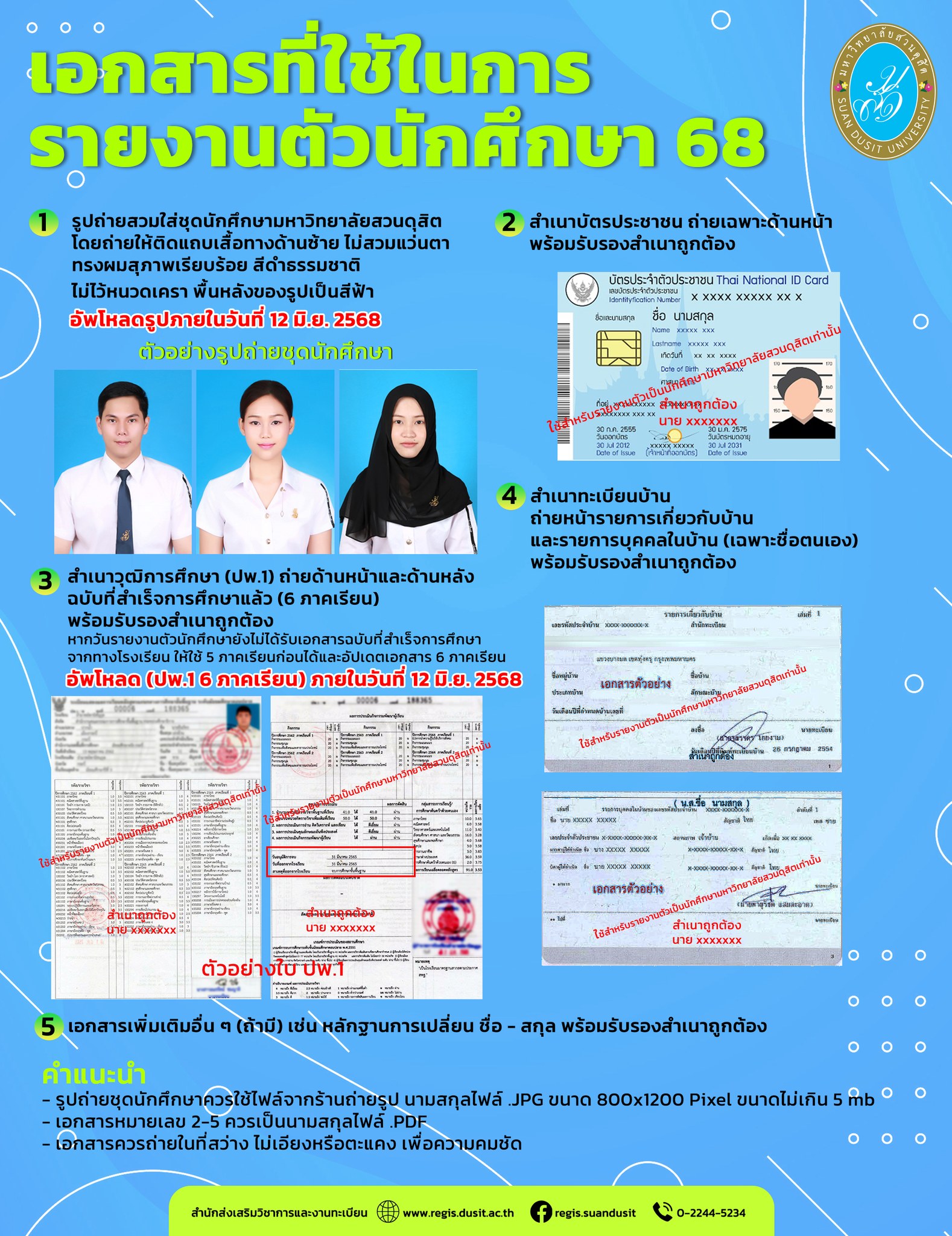 เอกสารที่ใช้ในการรายงานตัวนักศึกษา 68