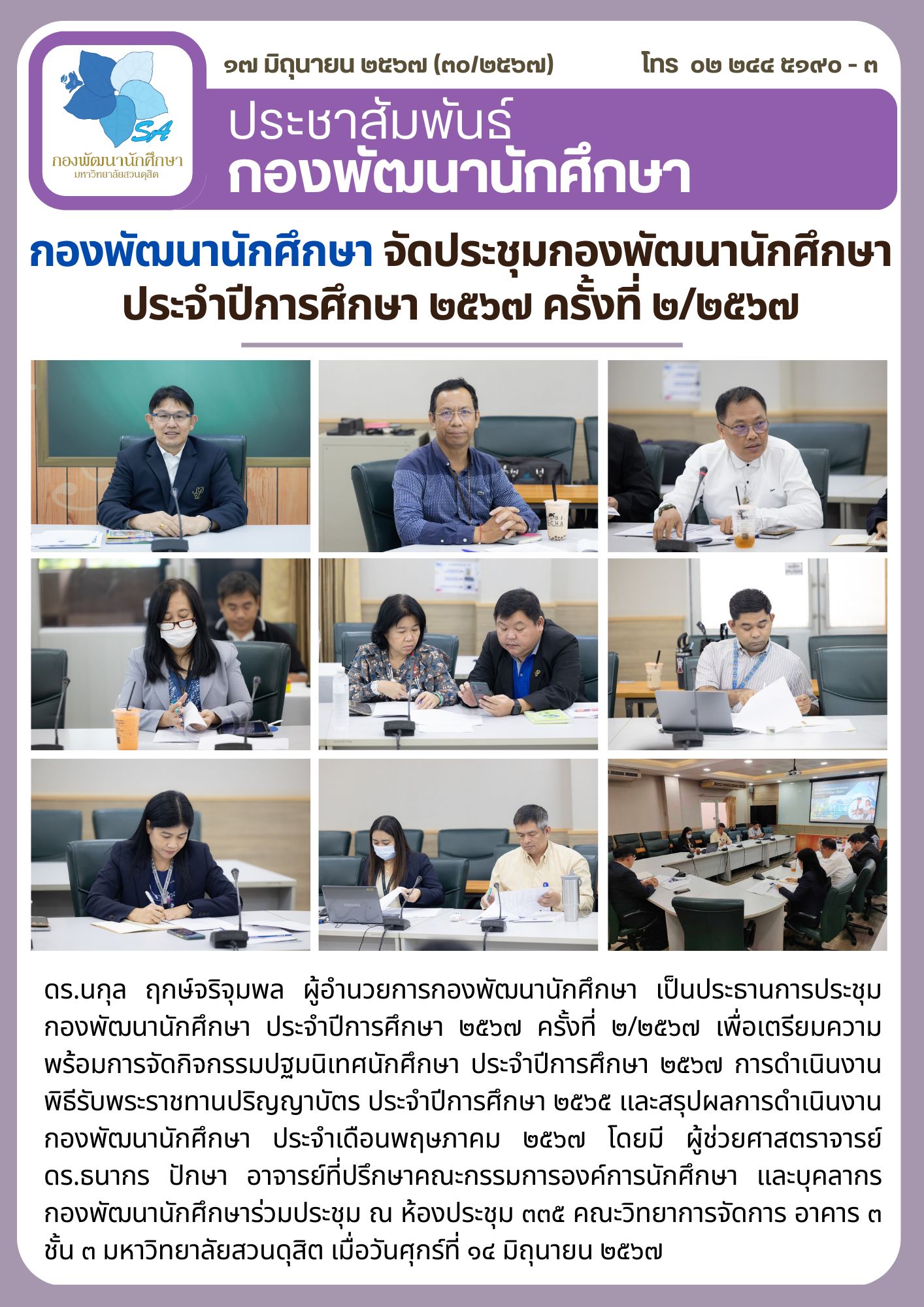 กองพัฒนานักศึกษา จัดประชุมกองพัฒนานักศึกษา ประจำปีการศึกษา ๒๕๖๗ ครั้งที่ ๒/๒๕๖๗