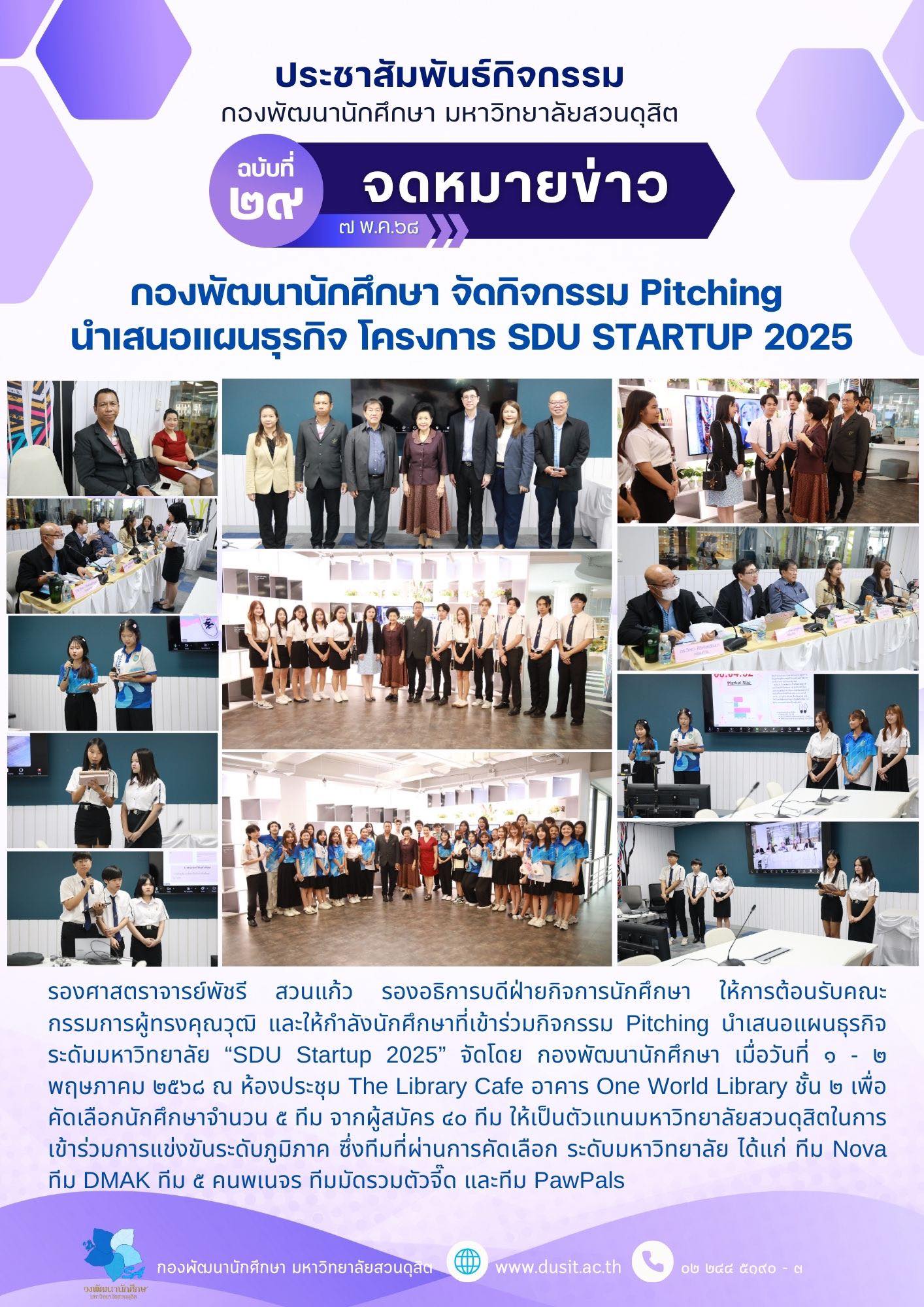 กองพัฒนานักศึกษา จัดกิจกรรม Pitching นำเสนอแผนธุรกิจ โครงการ SDU STARTUP 2025