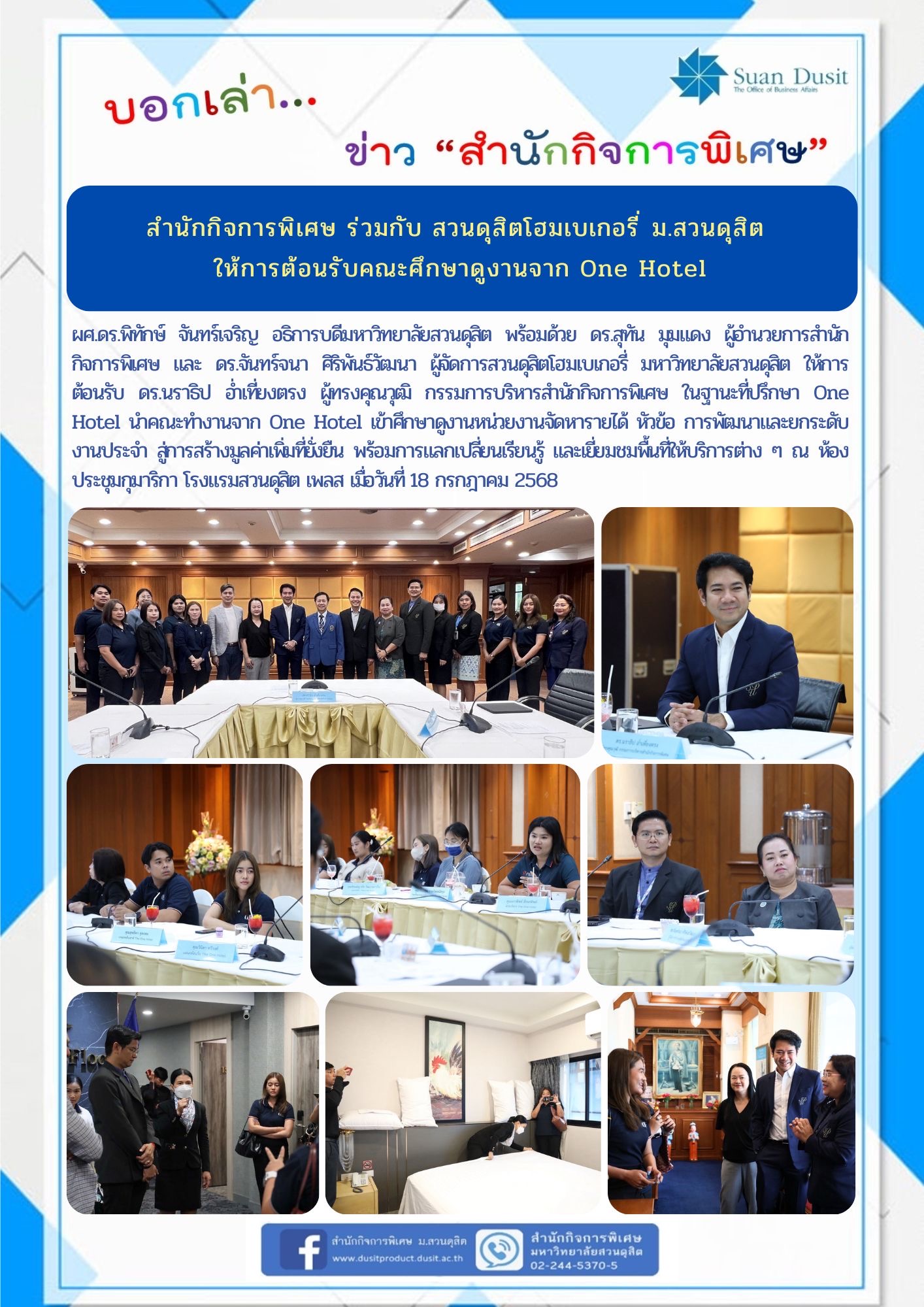 สำนักกิจการพิเศษ ร่วมกับ สวนดุสิตโฮมเบเกอรี่ ม.สวนดุสิต ให้การต้อนรับคณะศึกษาดูงานจาก One Hotel
