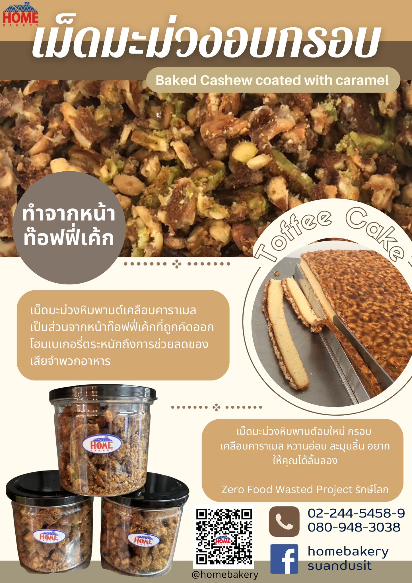 “เม็ดมะม่วงอบกรอบ” ผลิตภัณฑ์จากท๊อฟฟี่เค้กที่เปลี่ยน Food Waste ให้เป็นผลิตภัณฑ์ใหม่ โดยการนำหน้าท๊อฟฟี่เค้กที่ได้จากการตัดขอบมาอบให้ได้ที่ กลายเป็นเม๊ดมะม่วงเคลือบคาราเมลอบกรอบแสนอร่อยที่สามารถทานได้ทั้งเด็กและผู้ใหญ่ มีจำนวนจำกัดของทุกวัน