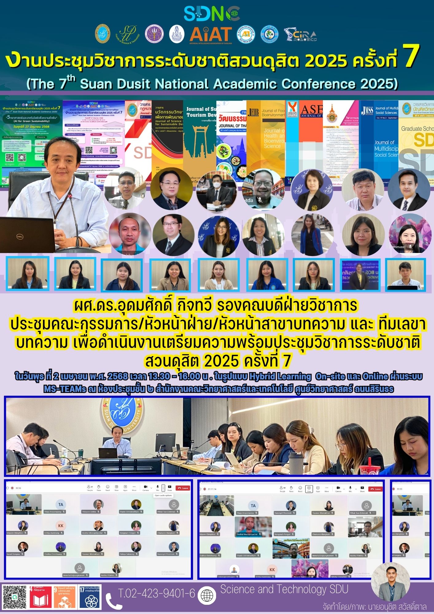 ประชุมคณะกรรมการ/หัวหน้าฝ่าย/หัวหน้าสาขาบทความ และ ทีมเลขา บทความ เพื่อดำเนินงานเตรียมความพร้อมประชุมวิชาการระดับชาติสวนดุสิต 2025 ครั้งที่ 7