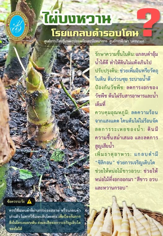 การใช้แกลบดำคลุมดิน ยังช่วยให้หน่อไม้ที่งอกออกมามีสีขาว อวบ และหวานกรอบขึ้น