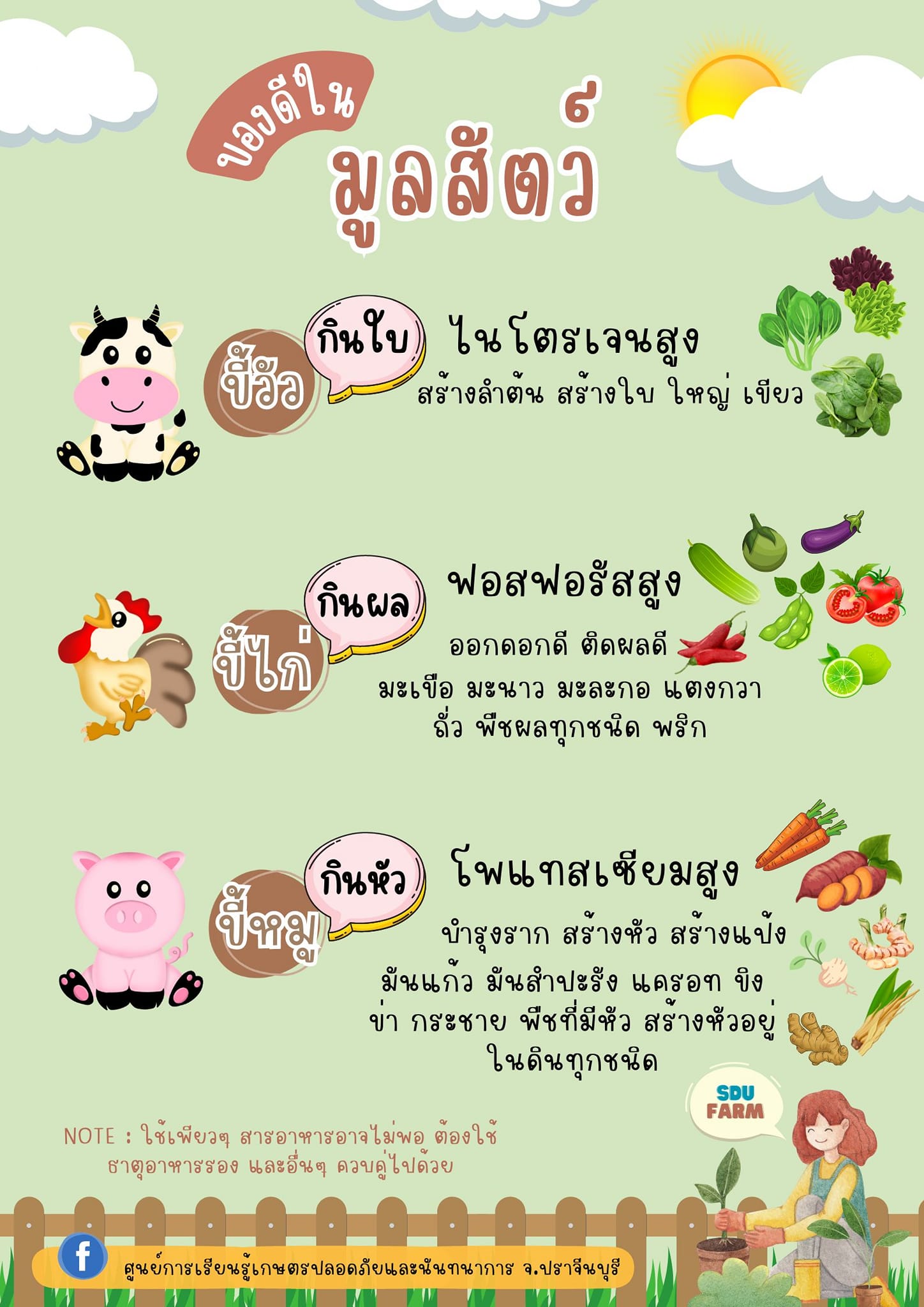ขี้วัว : ไนโตรเจนสูง สร้างลำต้น สร้างใบ ใหญ่ เขียว