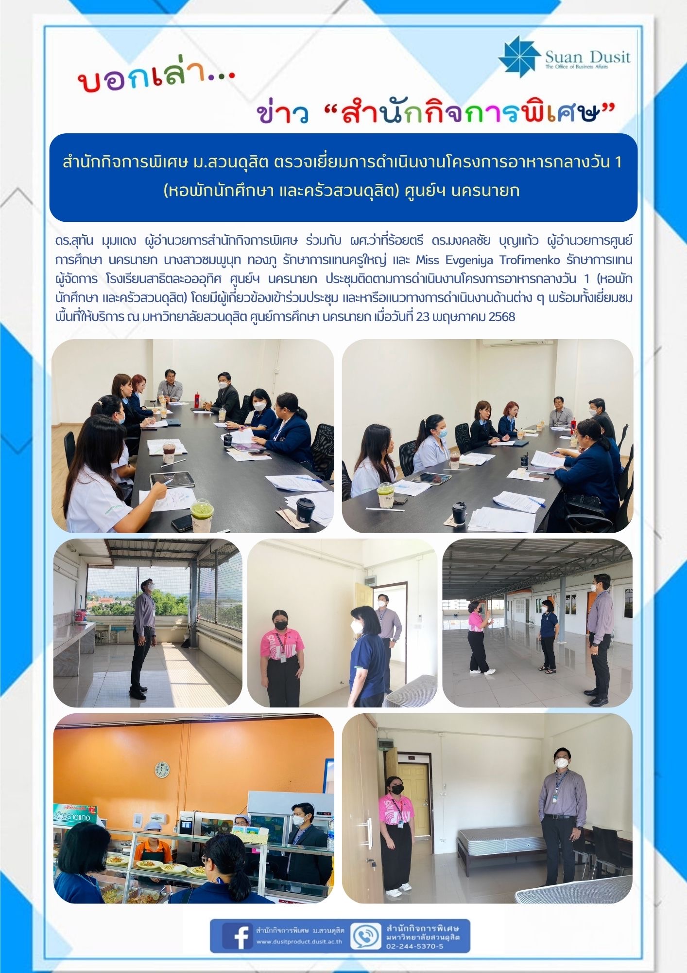 สำนักกิจการพิเศษ ม.สวนดุสิต ตรวจเยี่ยมการดำเนินงานโครงการอาหารกลางวัน 1 (หอพักนักศึกษา และครัวสวนดุสิต) ศูนย์ฯ นครนายก