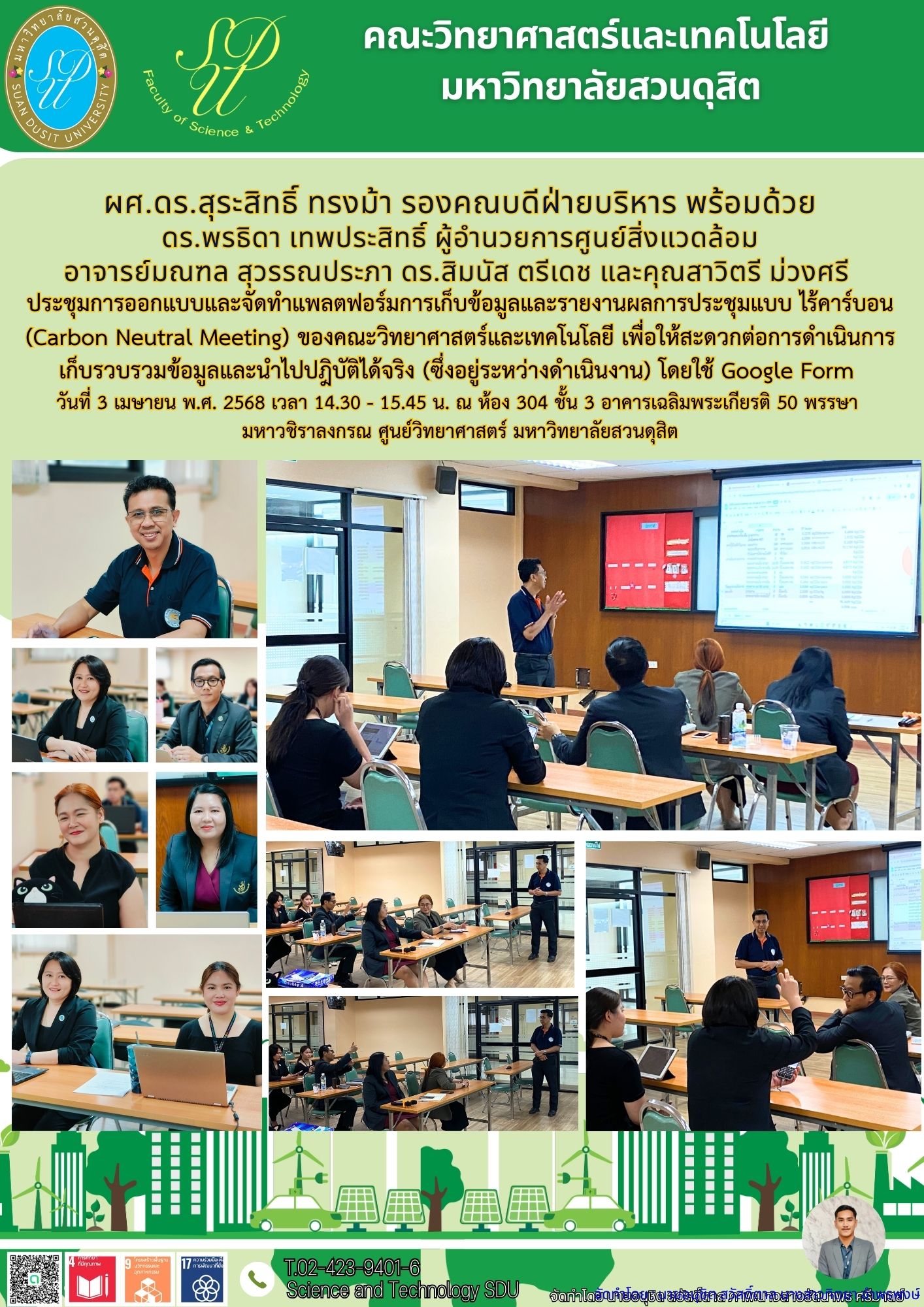 ประชุมการออกแบบและจัดทำแพลตฟอร์มการเก็บข้อมูลและรายงานผลการประชุมแบบ ไร้คาร์บอน (Carbon Neutral Meeting) ของคณะวิทยาศาสตร์และเทคโนโลยี เพื่อให้สะดวกต่อการดำเนินการ