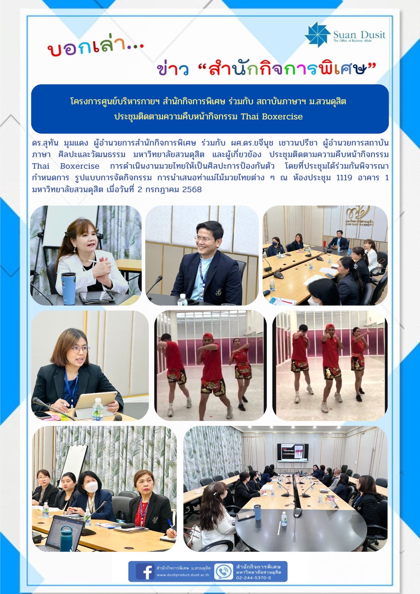 โครงการศูนย์บริหารกายฯ สำนักกิจการพิเศษ ร่วมกับ สถาบันภาษาฯ ม.สวนดุสิต ประชุมติดตามความคืบหน้ากิจกรรม Thai Boxercise