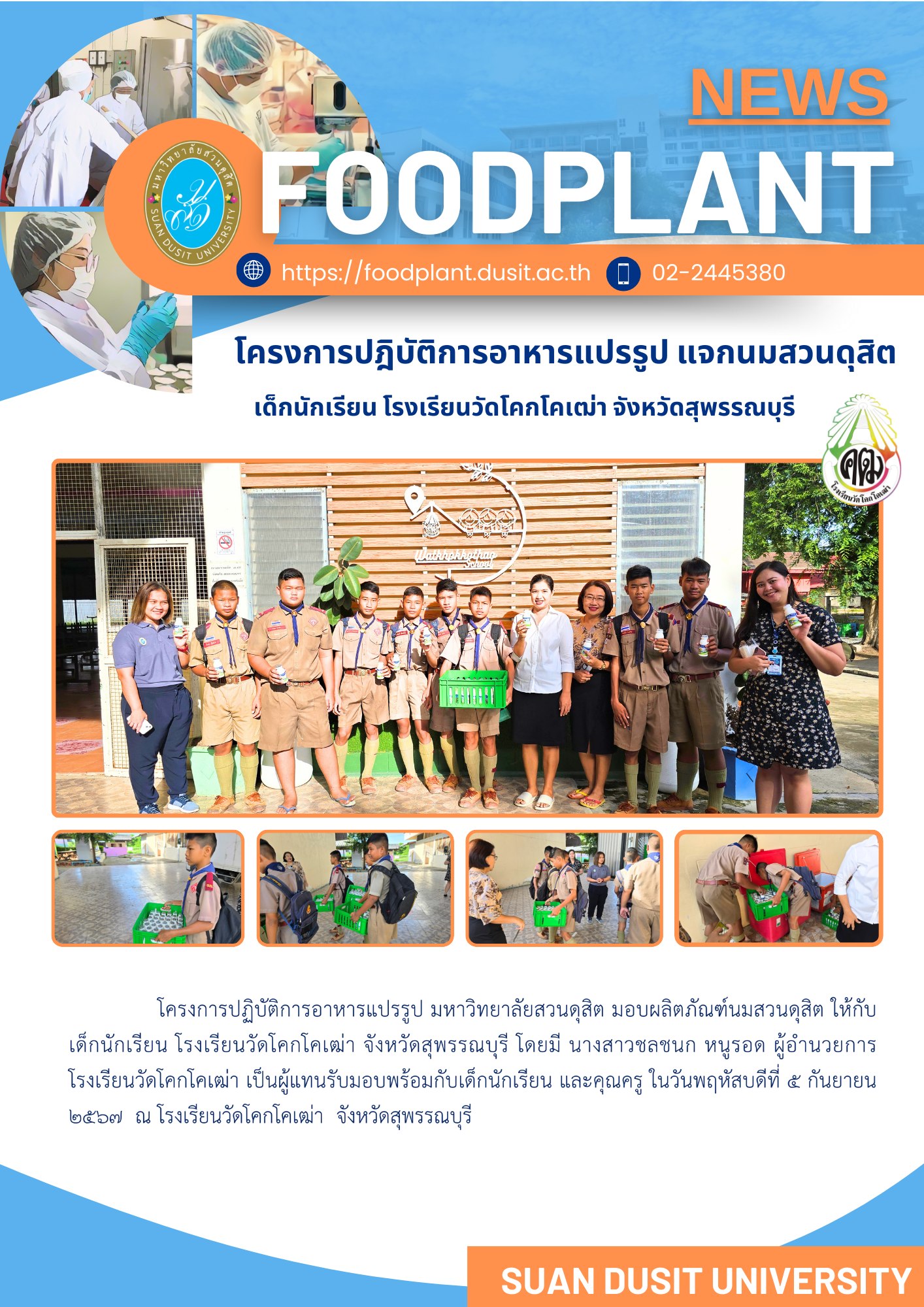 มอบผลิตภัณฑ์นมสวนดุสิต ให้กับเด็กนักเรียน โรงเรียนวัดโคกโคเฒ่า จังหวัดสุพรรณบุรี