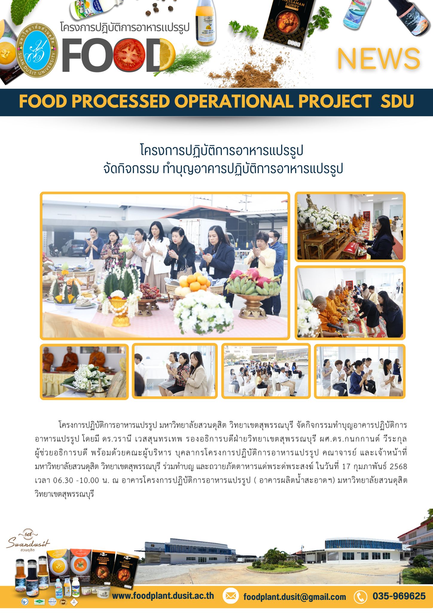 โครงการปฏิบัติการอาหารแปรรูป มหาวิทยาลัยสวนดุสิต วิทยาเขตสุพรรณบุรี จัดกิจกรรมทำบุญอาคารปฏิบัติการอาหารแปรรูป