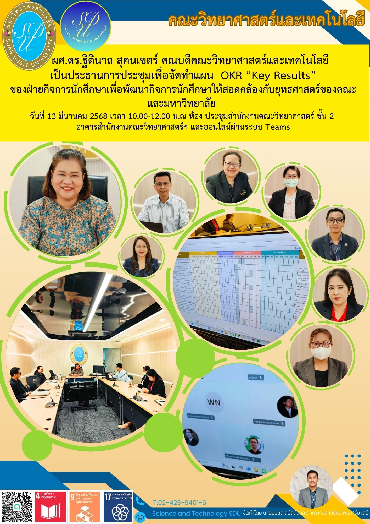 วันที่ 13 มีนานคม 2568 เวลา 10.00-12.00 น.ณ ห้อง ประชุมสำนักงานคณะวิทยาศาสตร์ ชั้น 2