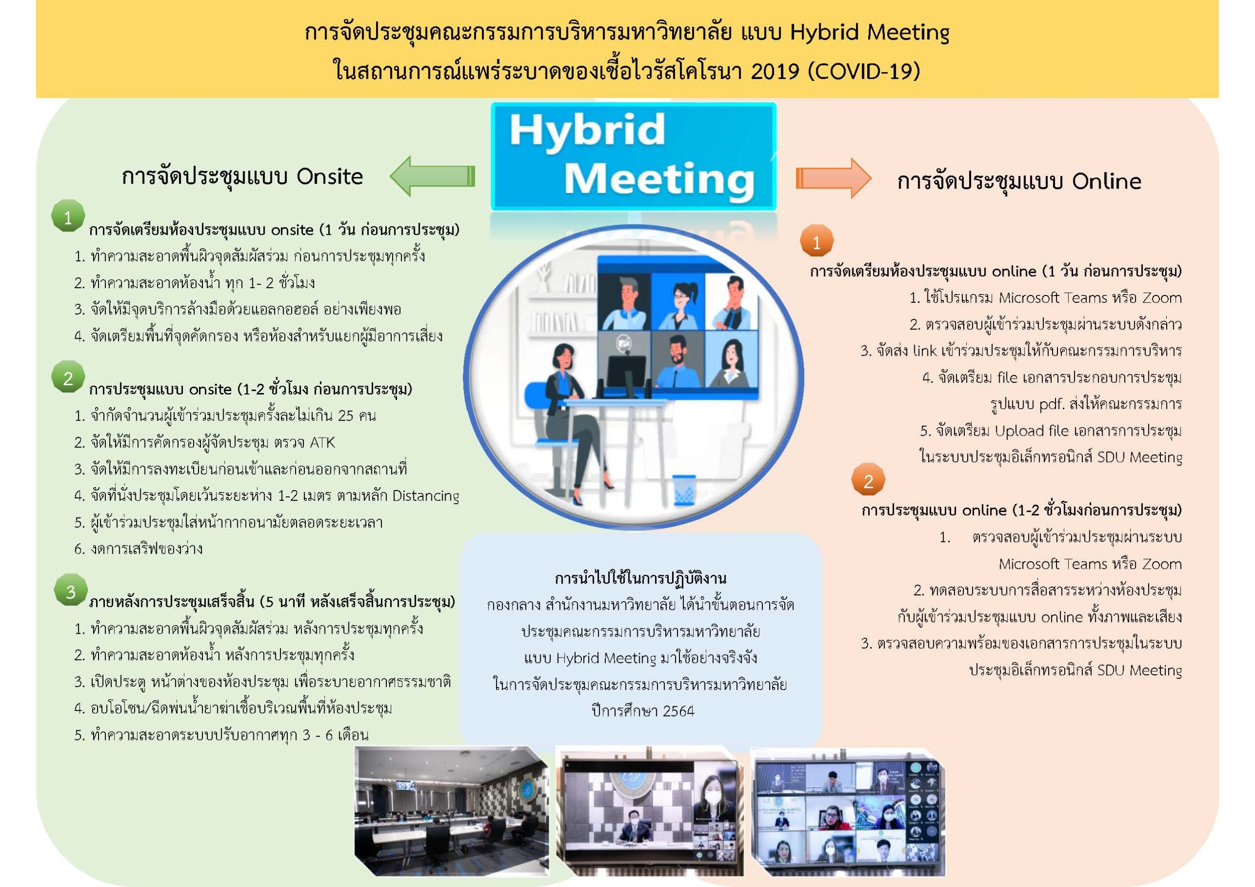 คู่มือการปฏิบัติงาน ปีการศึกษา 2564 การจัดประชุมคณะกรรมการบริหารมหาวิทยาลัยแบบ Hybrid Meeting ในสถานการณ์แพร่ระบาดของเชื้อไวรัสโคโรนา 2019 (COVID-19)
