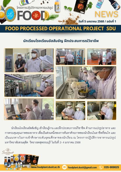 | dc.title | นักเรียนโรงเรียนอัสสัมชัญ เข้าเรียนรู้งาน เเละฝึกประสบการณ์วิชาชีพ ด้านการแปรรูปอาหาร และการควบคุมคุณภาพของอาหาร | |