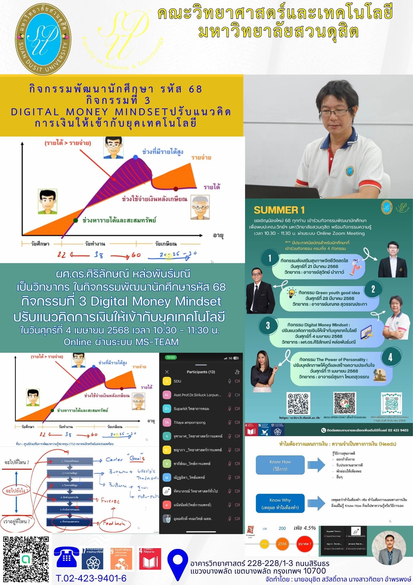 กิจกรรมพัฒนานักศึกษา รหัส 68 กิจกรรมที่ 3 Digital Money Mindsetปรับแนวคิดการเงินให้เข้ากับยุคเทคโนโลยี